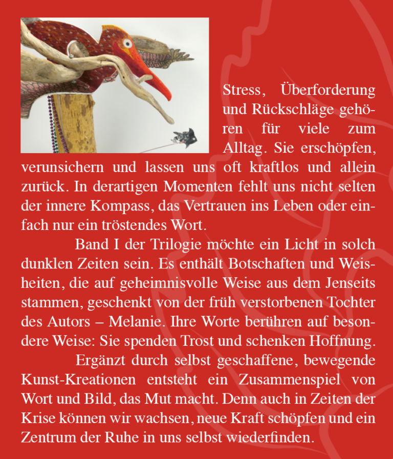 10 Jahre nach Erscheinen der ersten Ausgaben der „Trost-Tropfen der Hoffnung“, ist eine Trilogie mit über 1000 Botschaften – ausgewählt aus rund 5000 – der früh verstorbenen Tochter des Autors erschienen. Ihre Nachrichten der Liebe und praktischen Ratschläge gelangen auf geheimnisvolle Weise aus dem Traumland zum Autor, sie sollen Hoffnung spenden und tropfenweise eine trost- und sinnstiftende Begleitung durchs Leben sein. Ihre Lebensweisheiten wollen Mut spenden, damit wir freier und glücklicher leben – oder uns einfach zum Schmunzeln bringen.